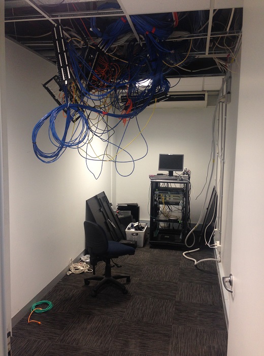 We had continued to work for them after construction was completed and in June 2012 we received a call when the Comms room was flooded. Cleaning contractors were cleaning the balcony on the 9th floor and the excess water flooded straight into the ceiling space of the Comms room flooding their Servers and network equipment.