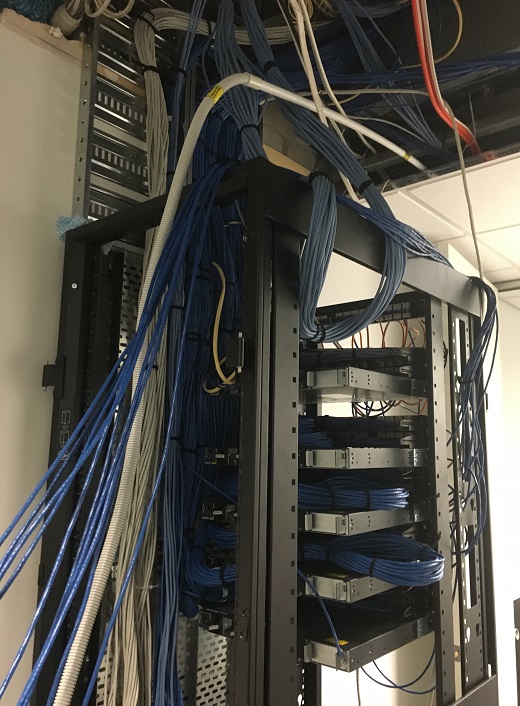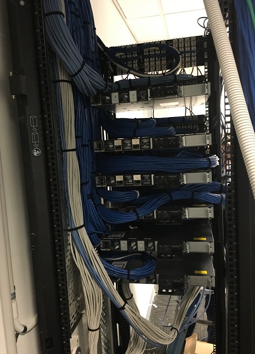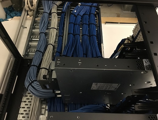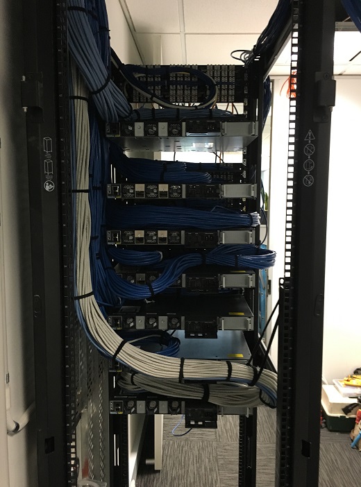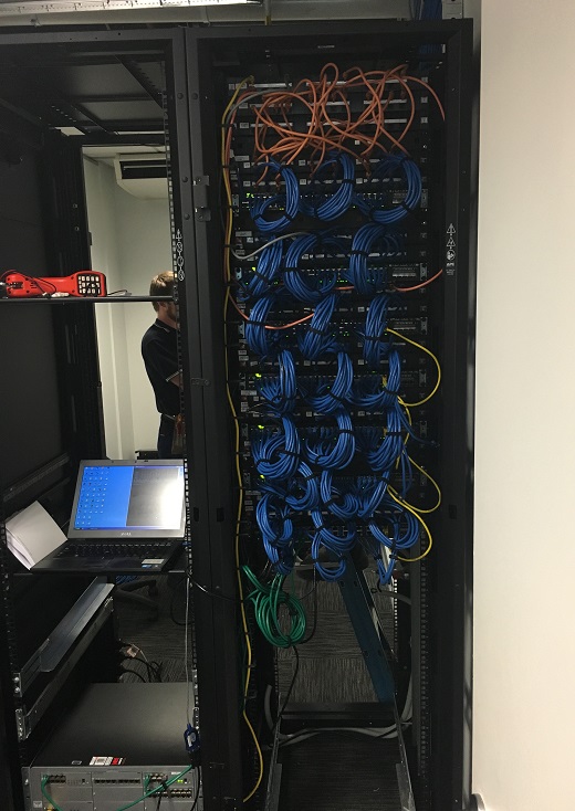 When the room was cleaned and dried we commenced the task of disconnecting all 250+ data cables from the water damaged patch panels and getting them back into the cabinet and then fitting off the cable to new patch panels. Once that was completed the network switches and servers were reinstalled into the cabinets and they were operational again.